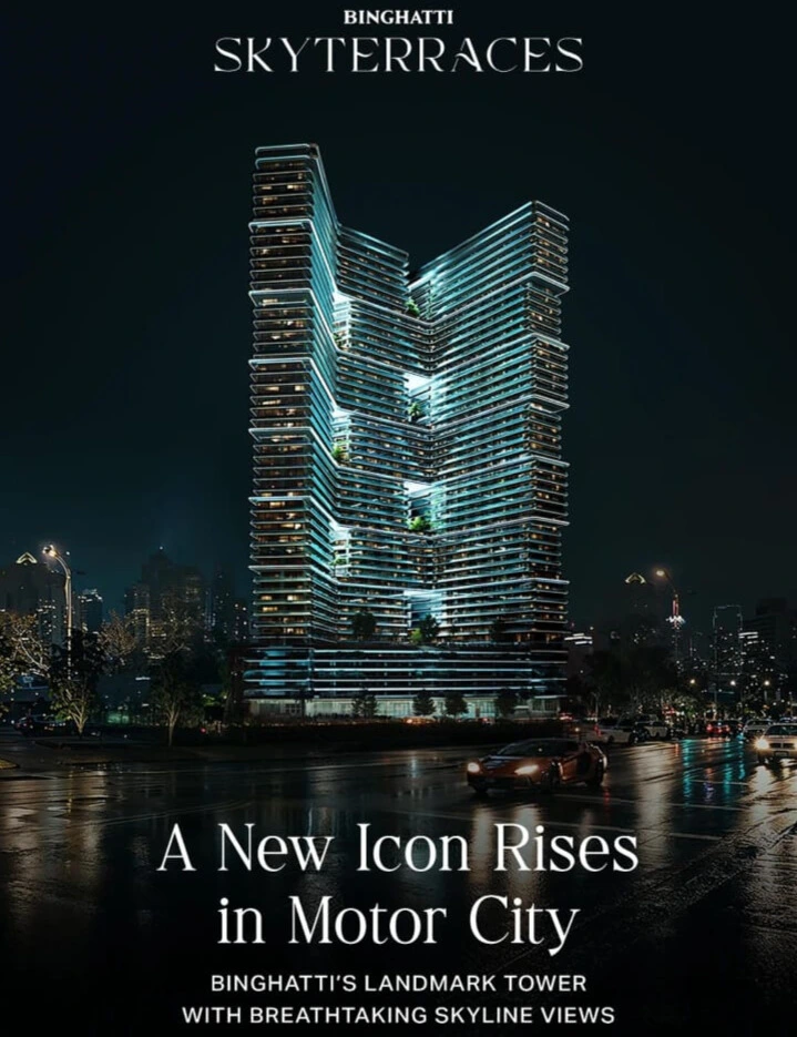 Binghatti Sky Terraces is a premium residential and retail development located in Motor City, Dubai, right next to the Dubai Autodrome. It offers a modern architectural design, spacious terraces, and world-class lifestyle amenities.